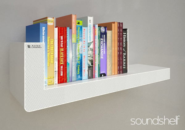 From the Bookshelf blog–yes, an entire blog about bookshelves–comes this useful combo. It’s both a bookshelf and a speaker. It was designed by Witek Stefaniak and Anielka Zdanowicz of Poland as part of a competition sponsored by designboom magazine.–David E