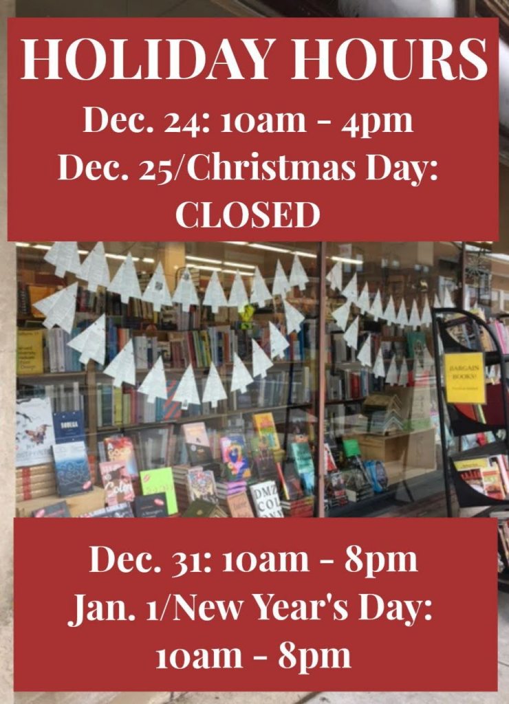 Thursday, 12/31 – New Year’s Eve: 10am-8pm